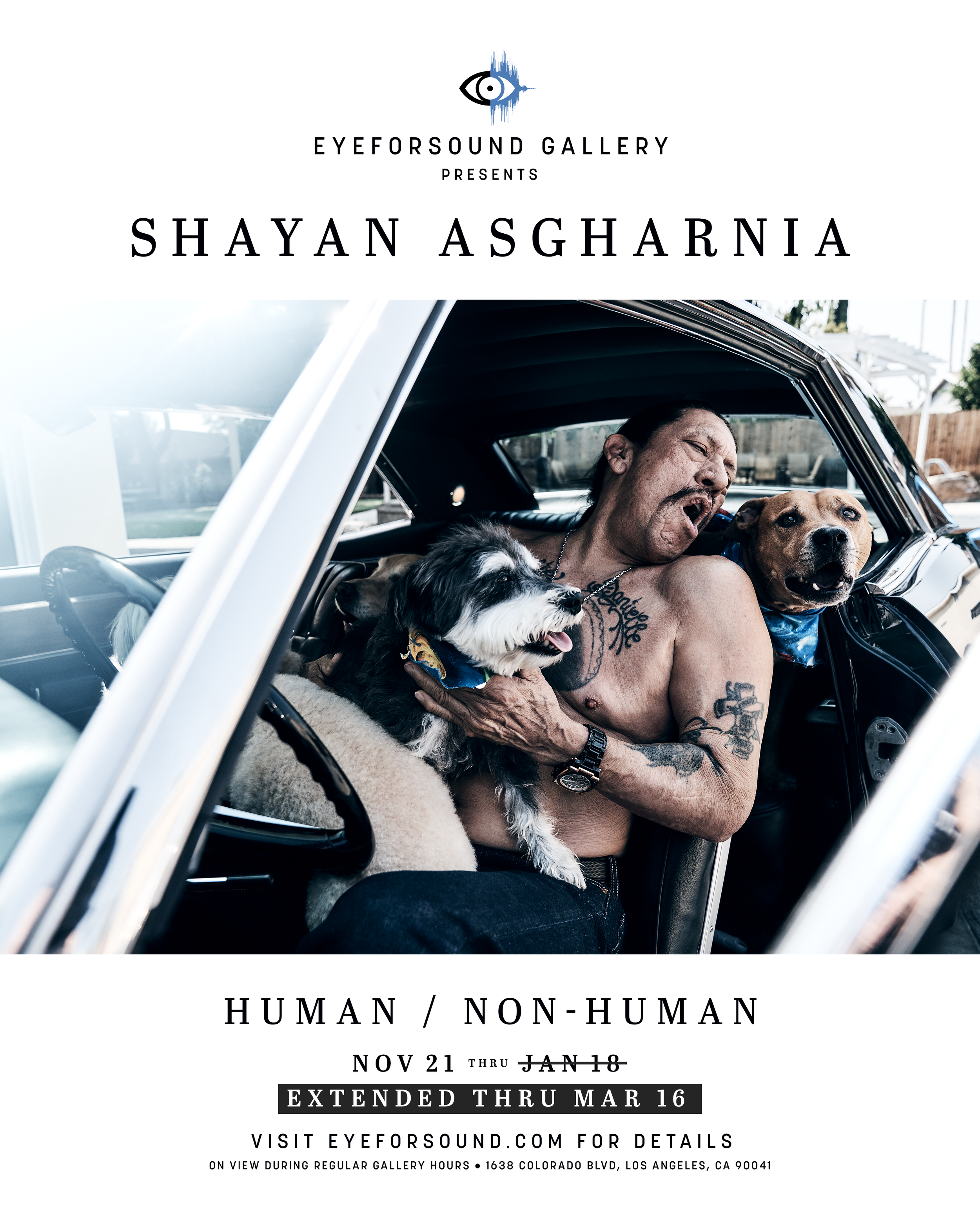 Human / Non-Human is a solo exhibition of striking images of animals and their human counterparts as captured by Shayan Asgharnia. Through his lens, Shayan's portraits allow for the personality & energy of his subjects to shine through naturally, inviting you into their space and essence.